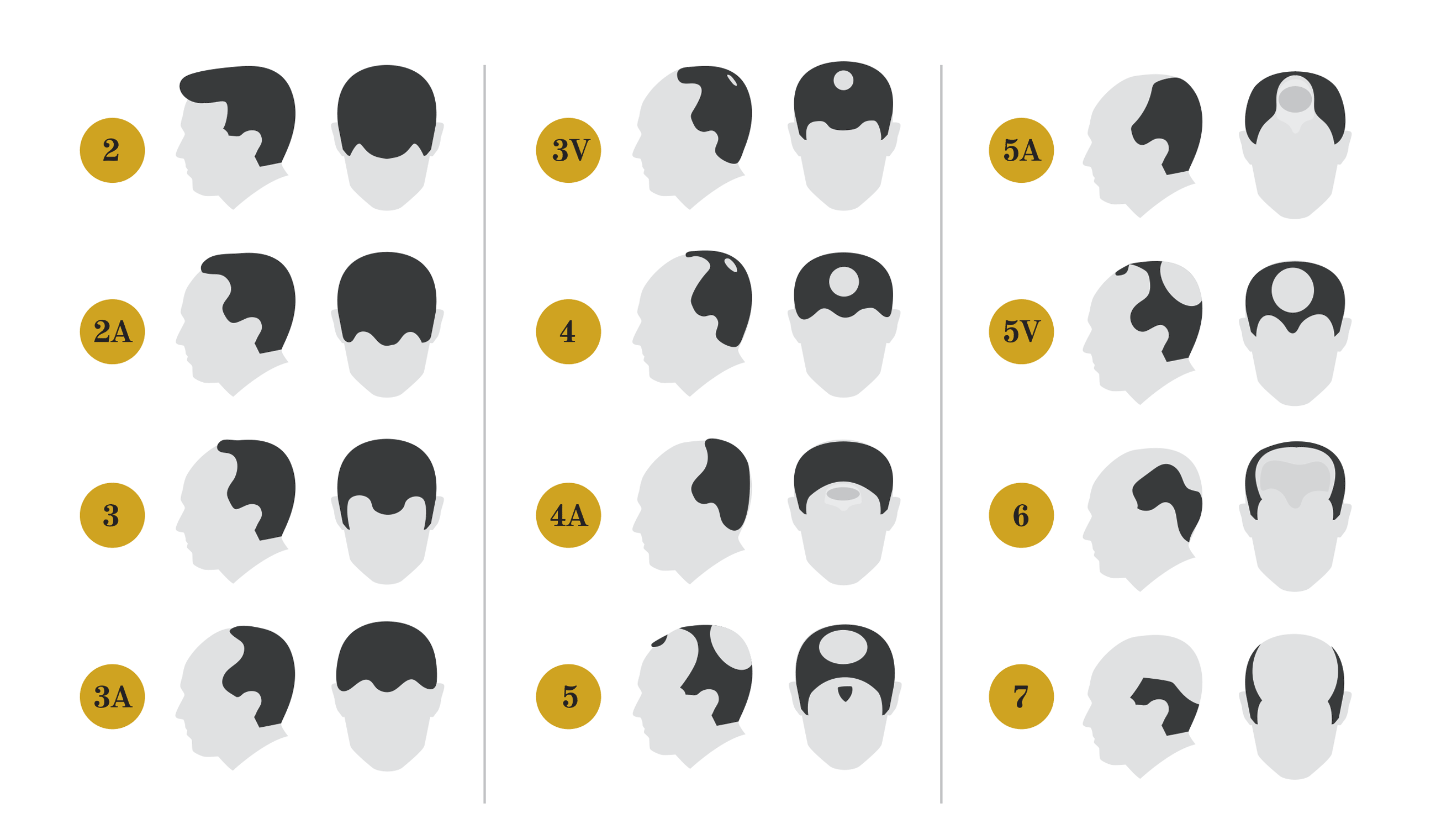 1. Front Hairline 2. Right Side View 3. Left Side View 4. Crown/Vertex